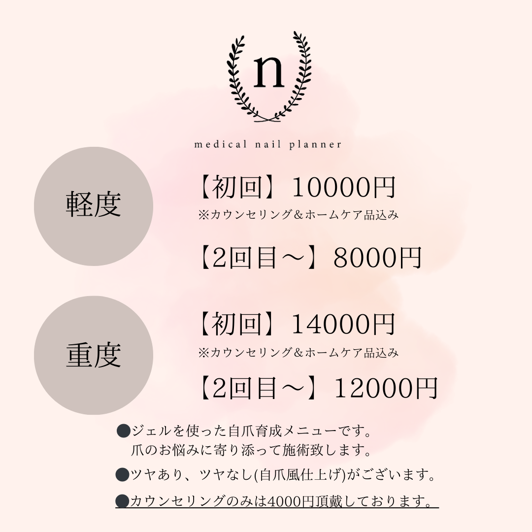 ※爪育成コースは同業者の方への施術はお断りさせていただきます。